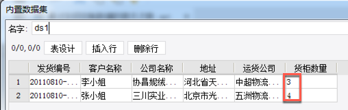 货柜数量即货物数量,由以上数据可以看出第一个货品有三件则需要显示三次,货物二有四件则需要显示四次,如下图所示: