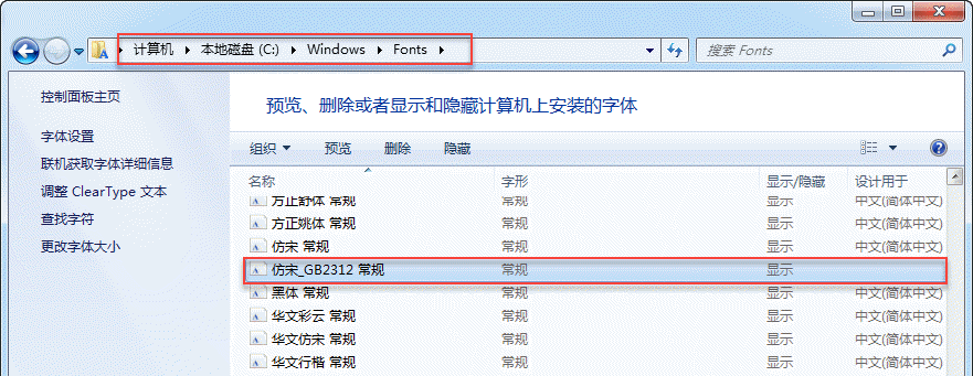 在网上将该字体下载下来,导入C:\Windows\Fonts文件夹中,如下图: