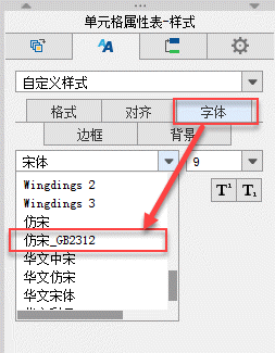 重启设计器,选中单元格,在单元格属性表字体设置处就可以看见改字体了,如下图: