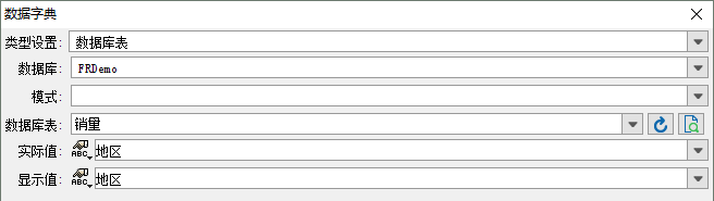 地区参数的控件类型选择下拉框,数据字典设置如下图: