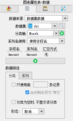 ,数据集为ds2,分类轴为Province,系列名使用 ,系列名称为Month,系列值为Amout,汇总方式为求和,如下图: