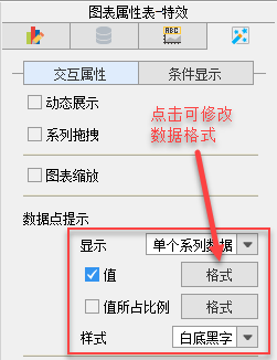 选中图表,点击图表属性表-特效>交互属性,选择数据点提示,在提示内容中选择您要提示的内容,如下: