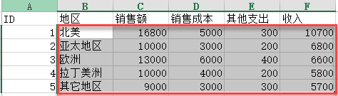 3)选中Excel中的数据,复制(Ctrl+C),如下图: