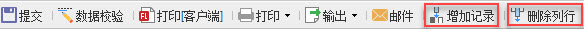 设置完成之后,点击填报预览,则可在web页面的顶部工具栏处看到增加记录,删除列行的图标按钮。