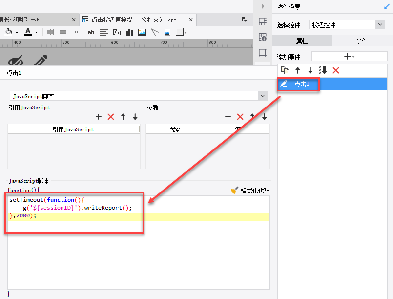填报报表,修改数据后都需要点击工具栏上的提交按钮才会与数据库进行交互。若不使用FR的提交按钮,如何调用提交事件与数据库进行交互呢?