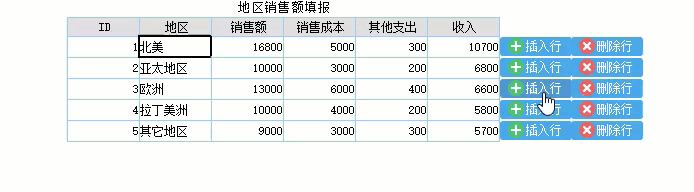支持插入行,不支持删除行