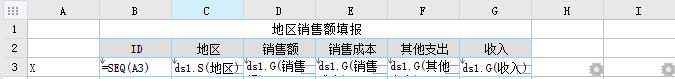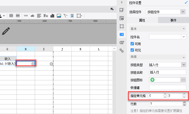 3)插入行策略选中B3单元格,在属性面板的单元格属性表处选择其他属性>插入行策略,插入行策略选择原值,如下图: