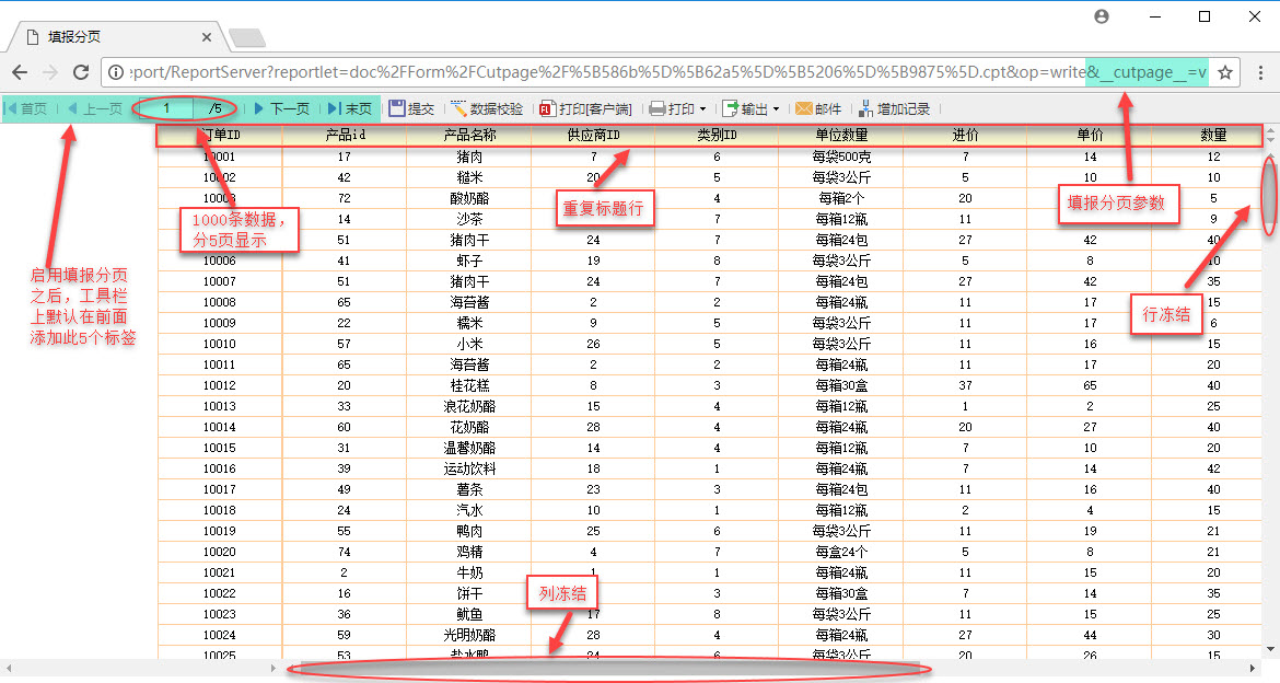 进行数据填报时,如果数据量过大,由于前端浏览器的性能限制,如果将数据全部展现出来,速度会非常的慢,影响用户体验,这时候大家就会想,填报是否能像分页预览一样进行分页呢,实现只加载当前页,从而提高性能,下面我们就来介绍填报分页的制作与浏览过程,在op=write下,使用__cutpage__=v参数(即在url后增加&__cutpage__=v)来启用填报横向不分页纵向分页。