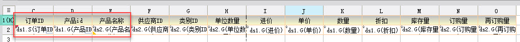 注:数据列中来自于ds1的数据列的父格需设置为C2,来自于ds2的数据列的父格需设置为E2。