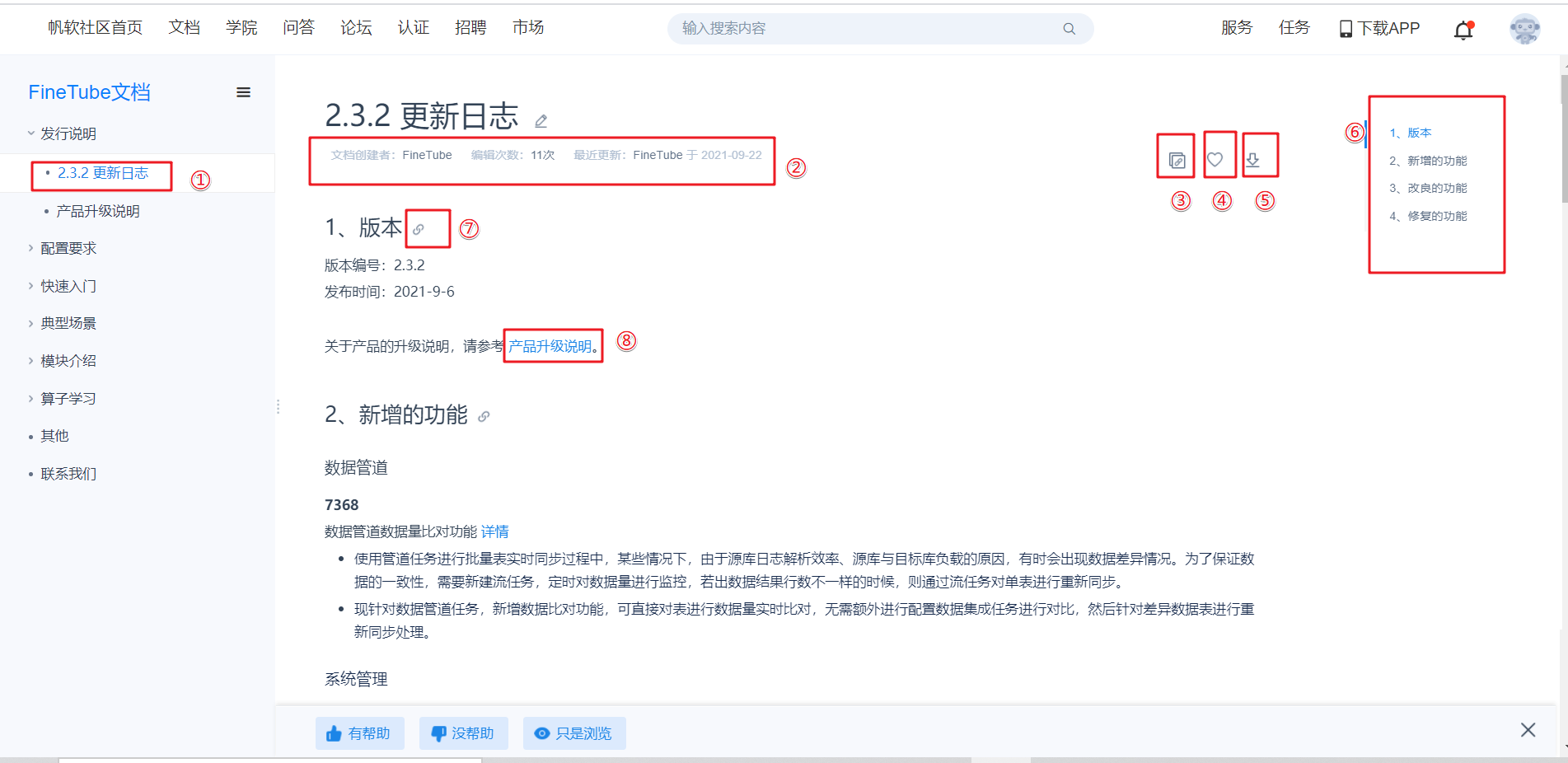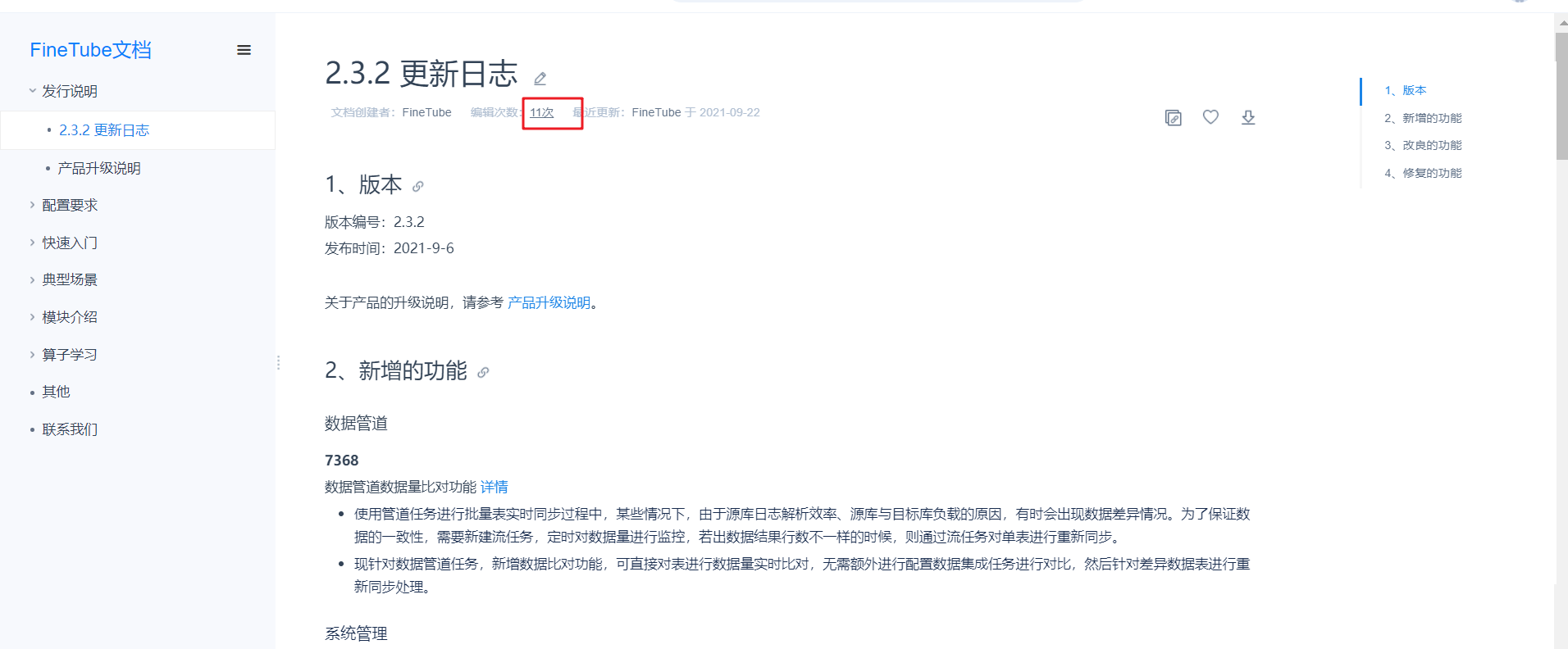 FineTube 的产品迭代速度较快,文档迭代更新也十分频繁。那对于功能已经变化,文档已经只展示新功能如何使用时,如何查看老版本功能如何使用的帮助文档呢?