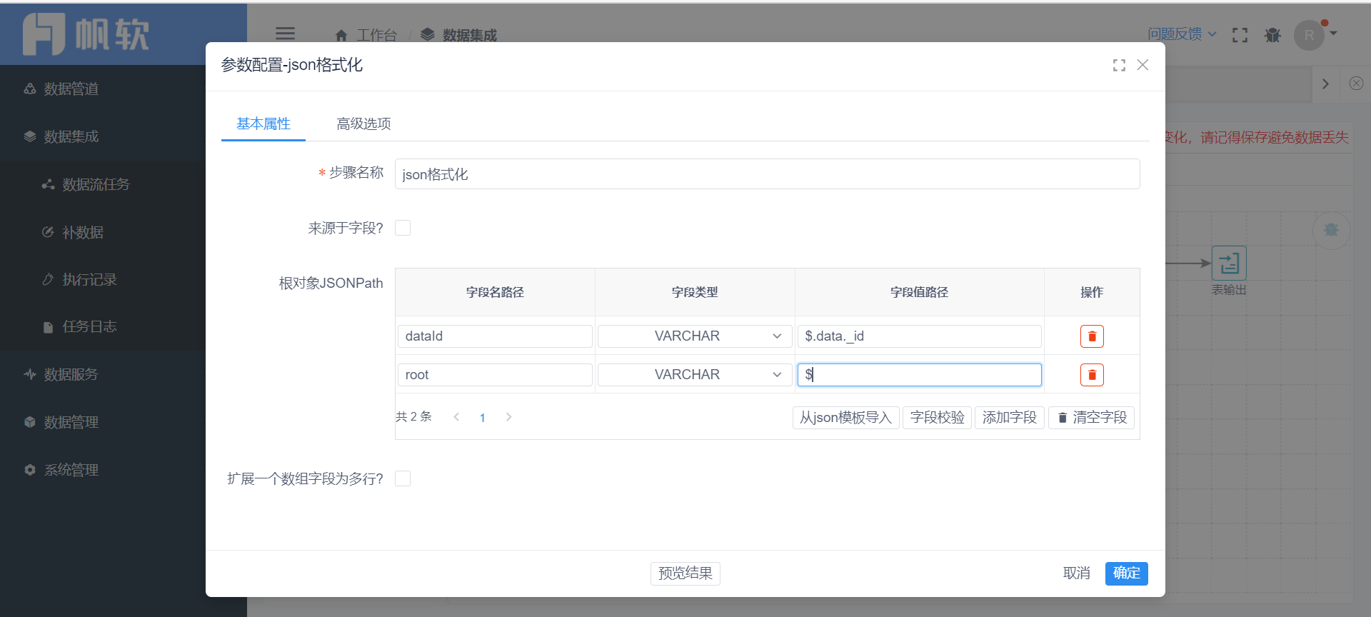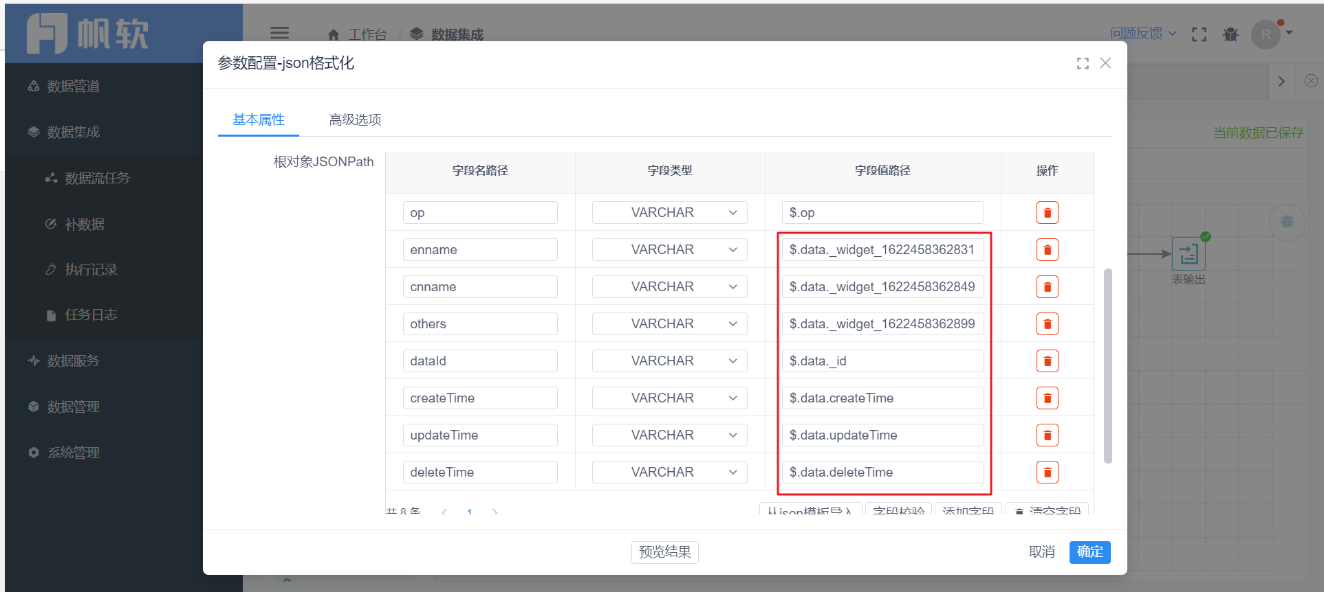 增加修改分支,字段处理,对JSON格式化后的数据根据需求进行函数处理。