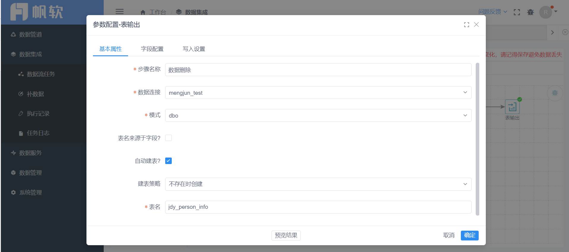 新增删除分支——表输出,选择数据库表,配置字段主键,删除对应数据。