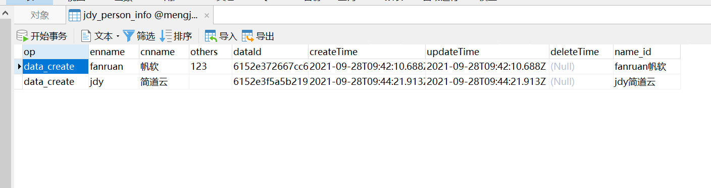 注:此处的creatTime、updateTime、deleteTime为简道云自带的utc时间戳,详情请见4.4字段对照表及JSON样例。