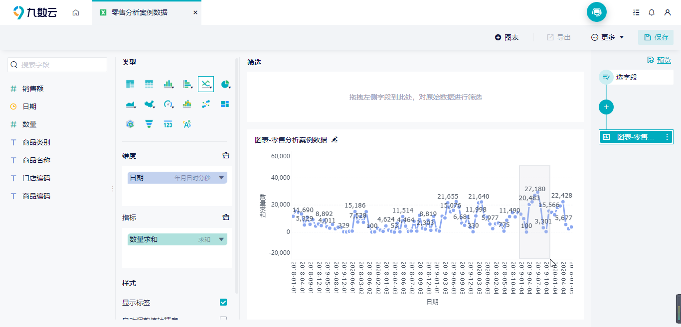 在4月版本之后,制作出来的图表将会默认展示为整体适应的状态,方便我们看到整体的趋势情况。在某些情况下,比如我想看看浏览量最高的几天是什么情况,就需要对图表进行局部放大。