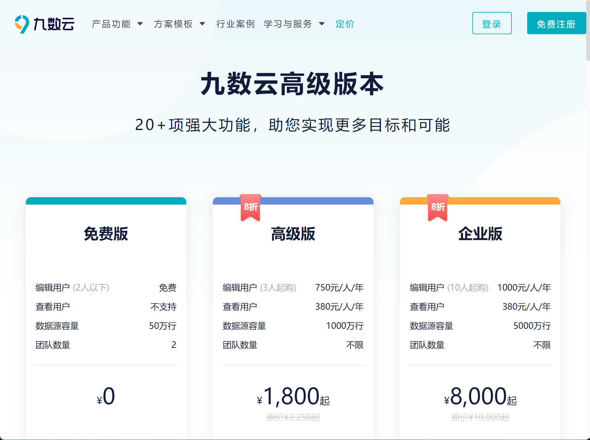 高级版&企业版:根据用户的需求,可自行购买基础功能和指定功能点,用户数和并发数按需购买。