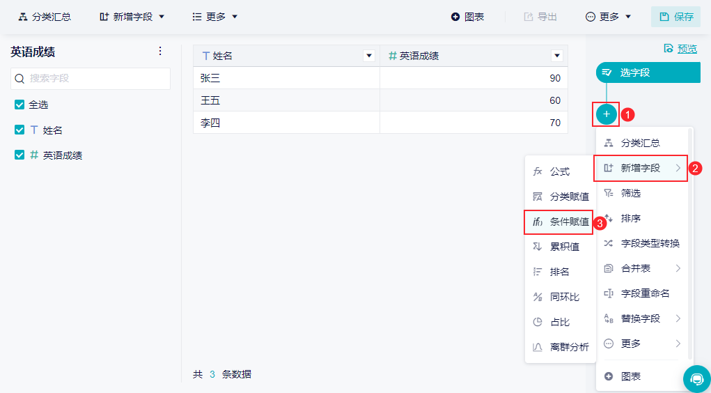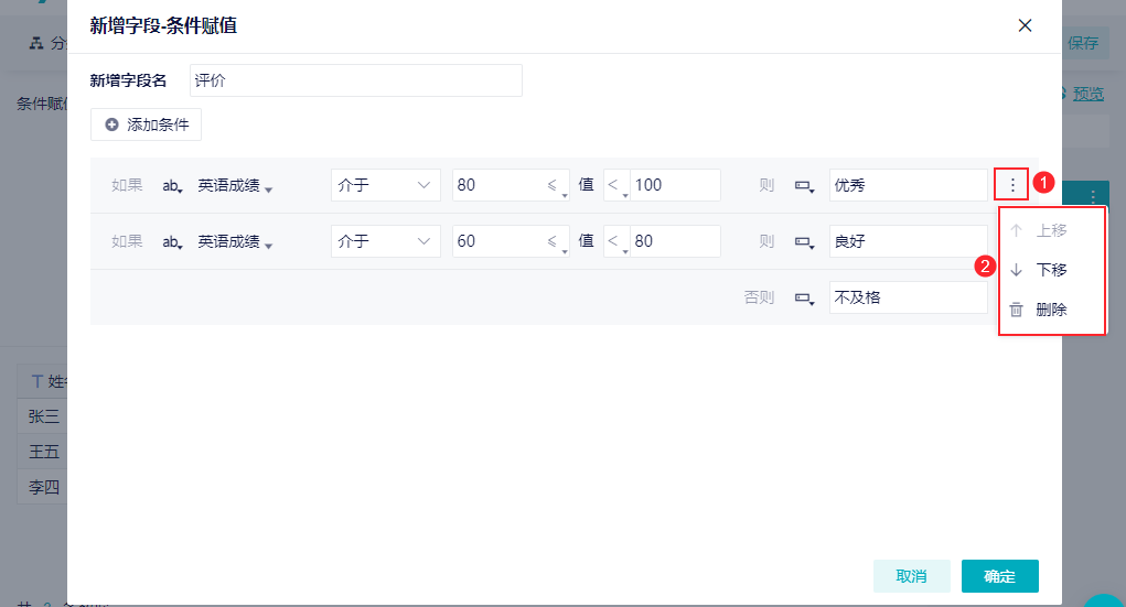 为此九数云推出了按条件赋值的可视化配置入口:「条件赋值」,通过简单的参数设置,即可实现 if 多条件分组赋值的效果。