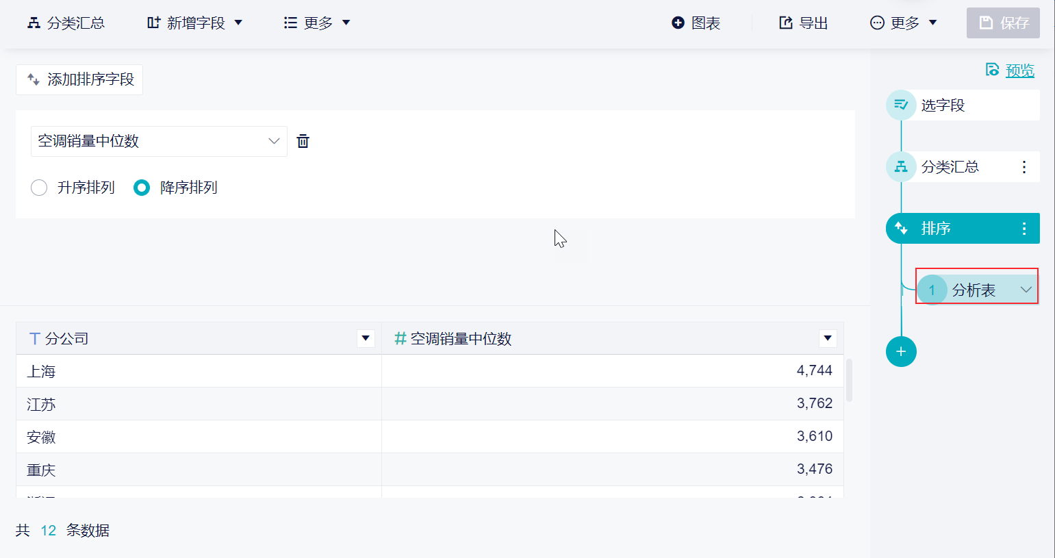 也可以切换到其他分析表的某个分析步骤下,操作如下图所示: