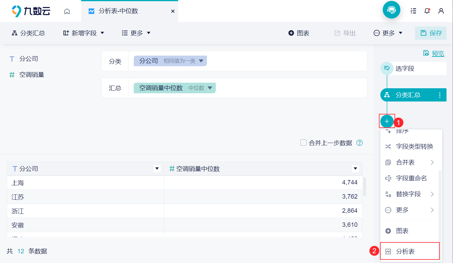 现在使用分析步骤-分析表功能,可以直接添加出分析表,之前的分析步骤复用。