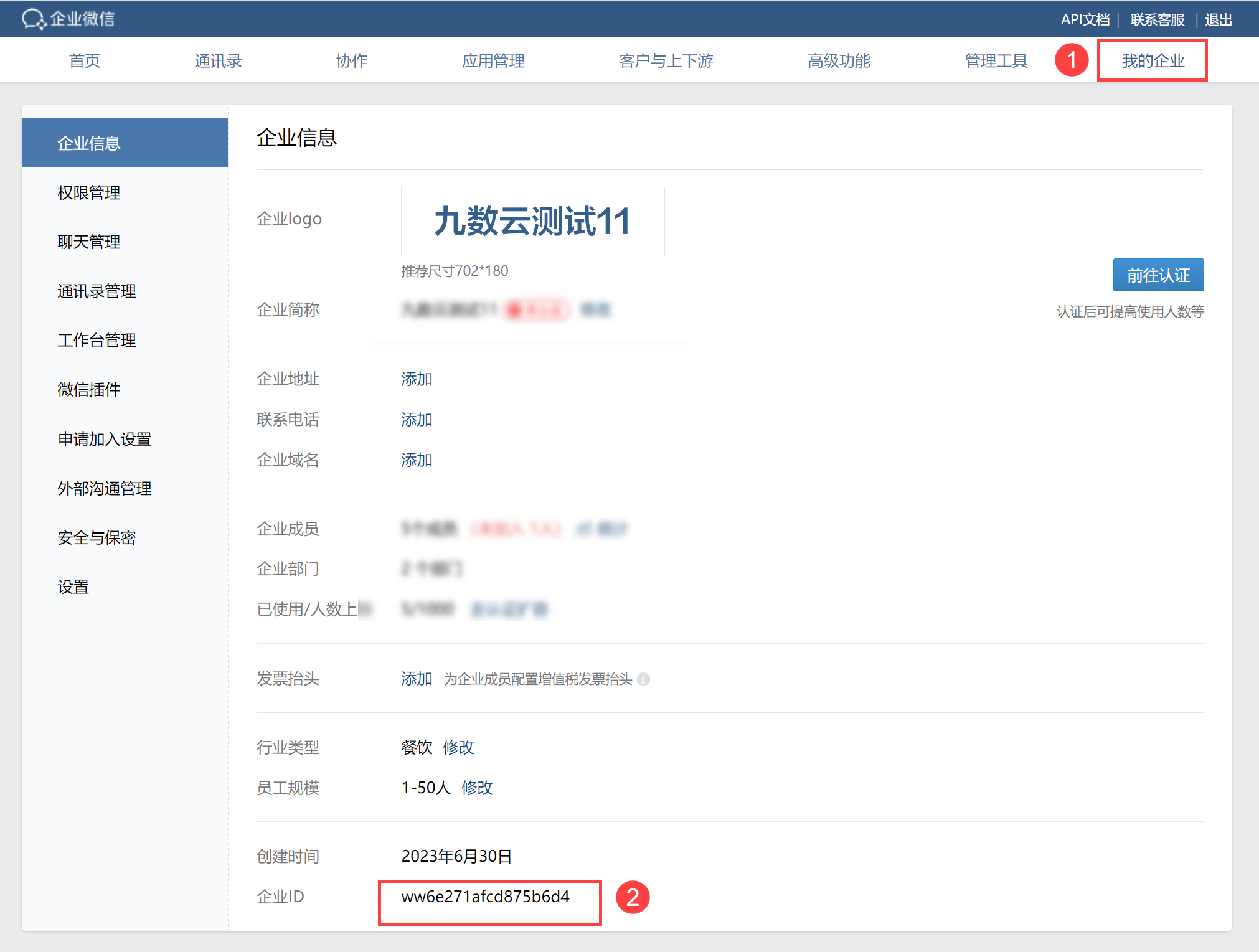 2)进入「我的企业」模块,可以在最后获取到「企业ID」