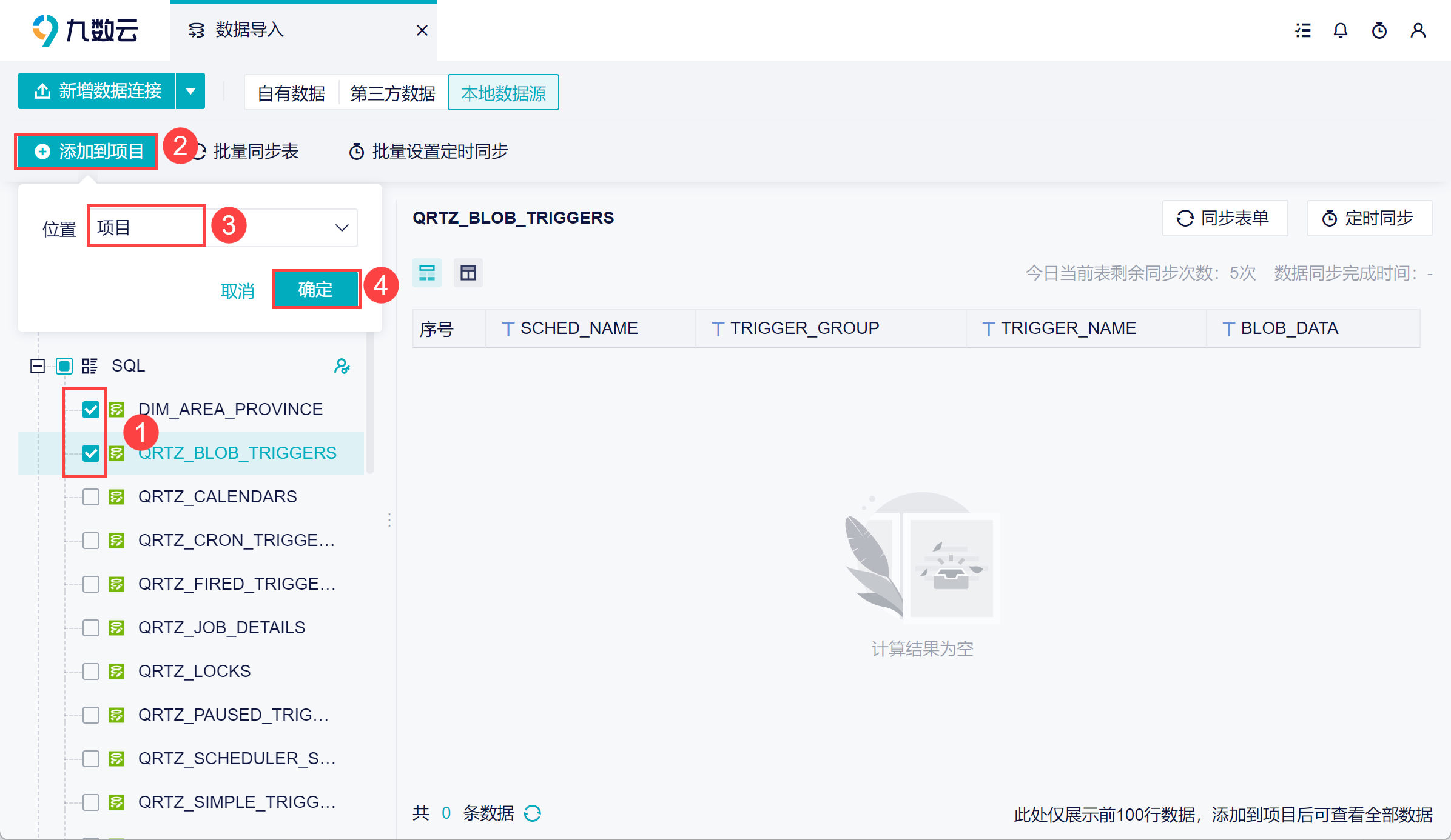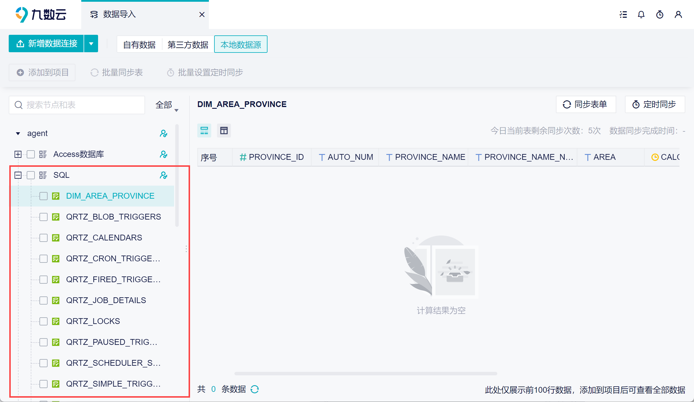 用户在本地安装了数据库,想要将数据库中的表同步至九数云中进行分析,该怎么实现呢?