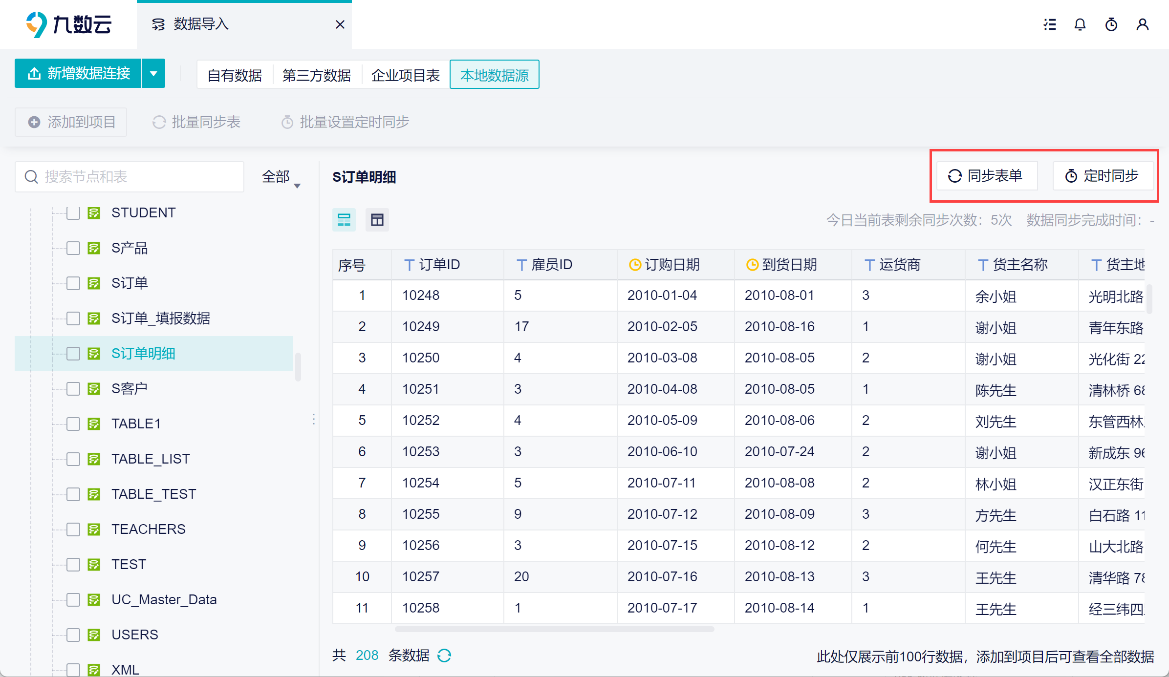 9)这样数据库的数据就可以同步至九数云了,如下图所示: