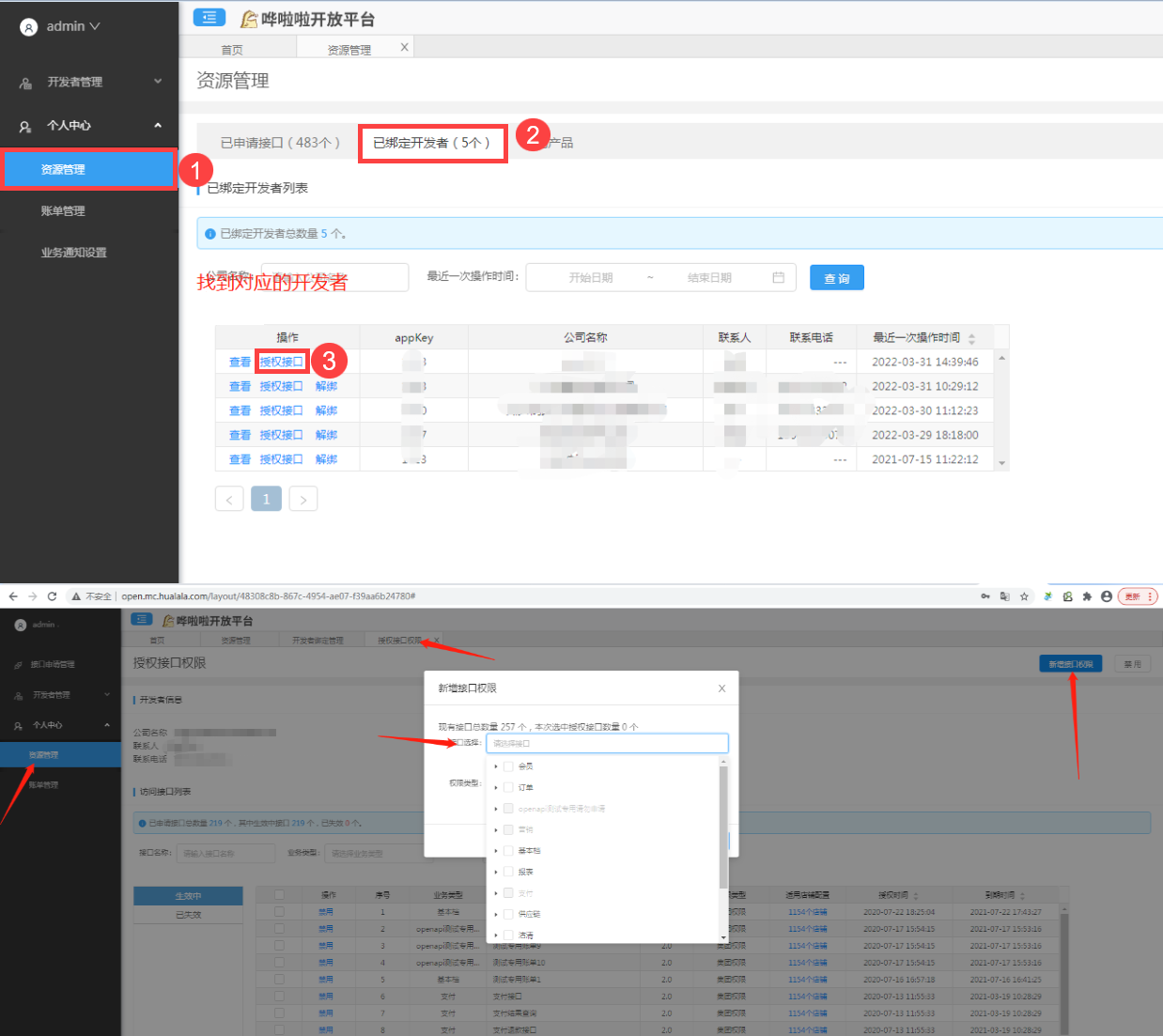 3)然后对服务数据及 API 进行选择并确定授权,即可完成业务授权操作。如下图所示: