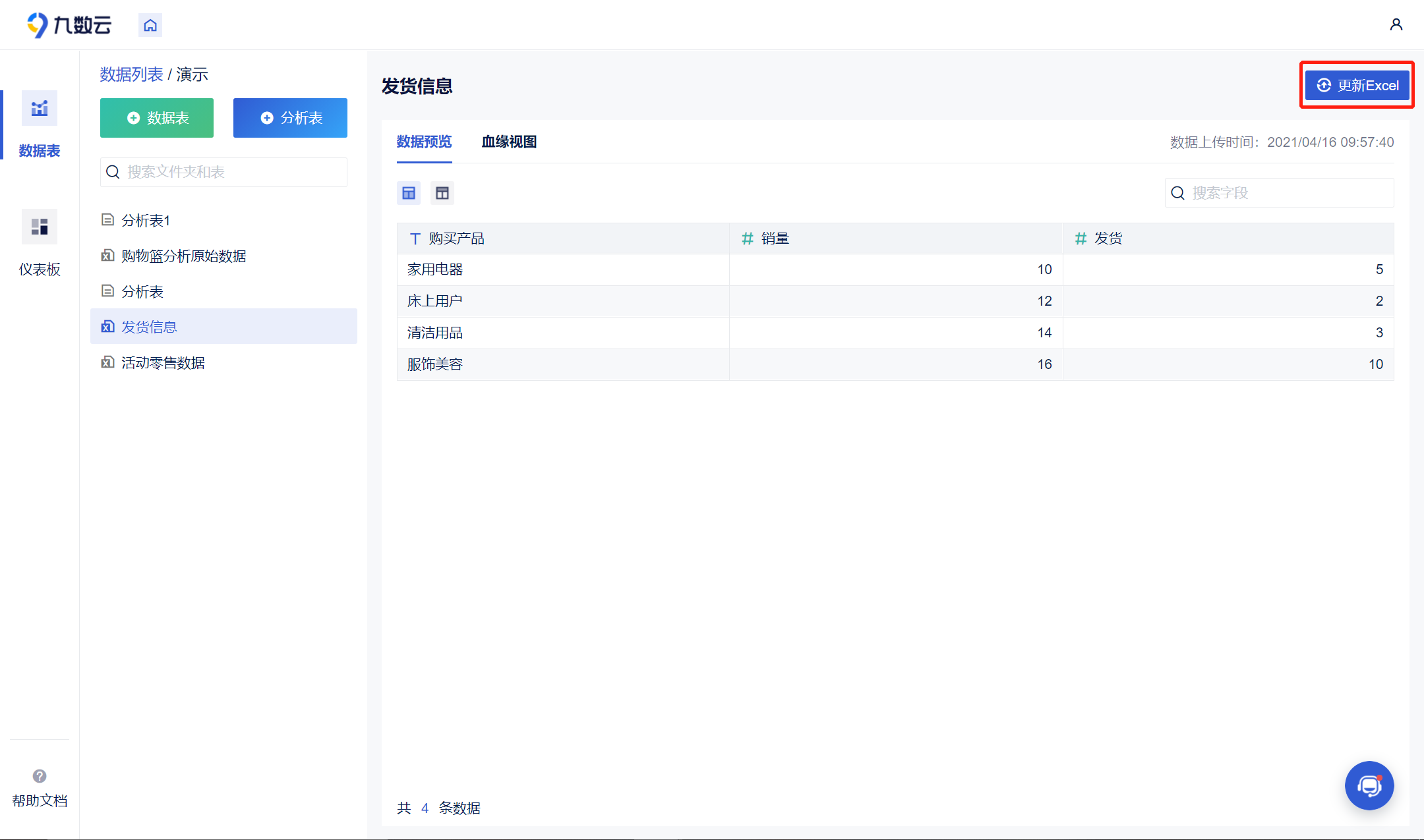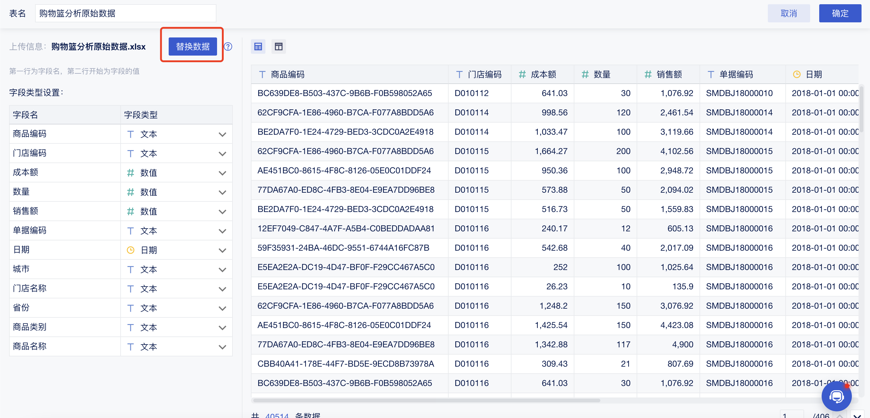 二、点击替换数据按钮,可以替换已经上传的Excel数据