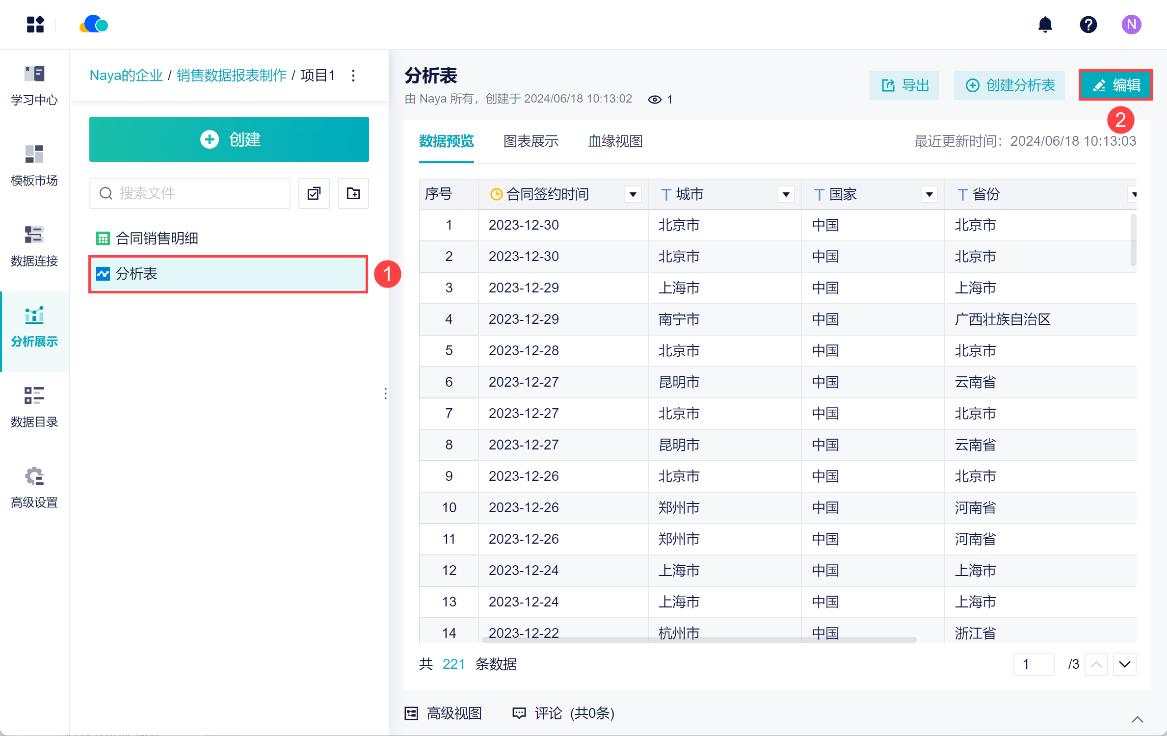 1)如果需要对某一张分析表进行备份,进入分析表编辑界面。如下图所示: