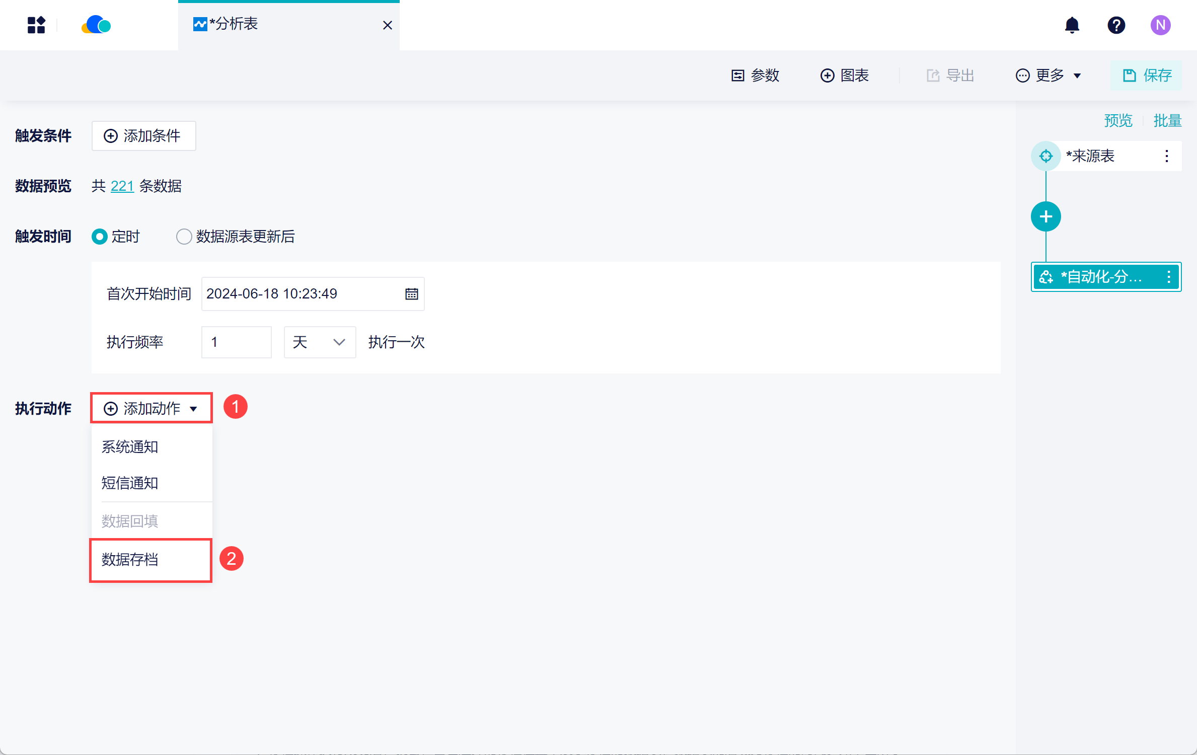 1)选择需要定期存档的项目,选择「自动化」。如下图所示: