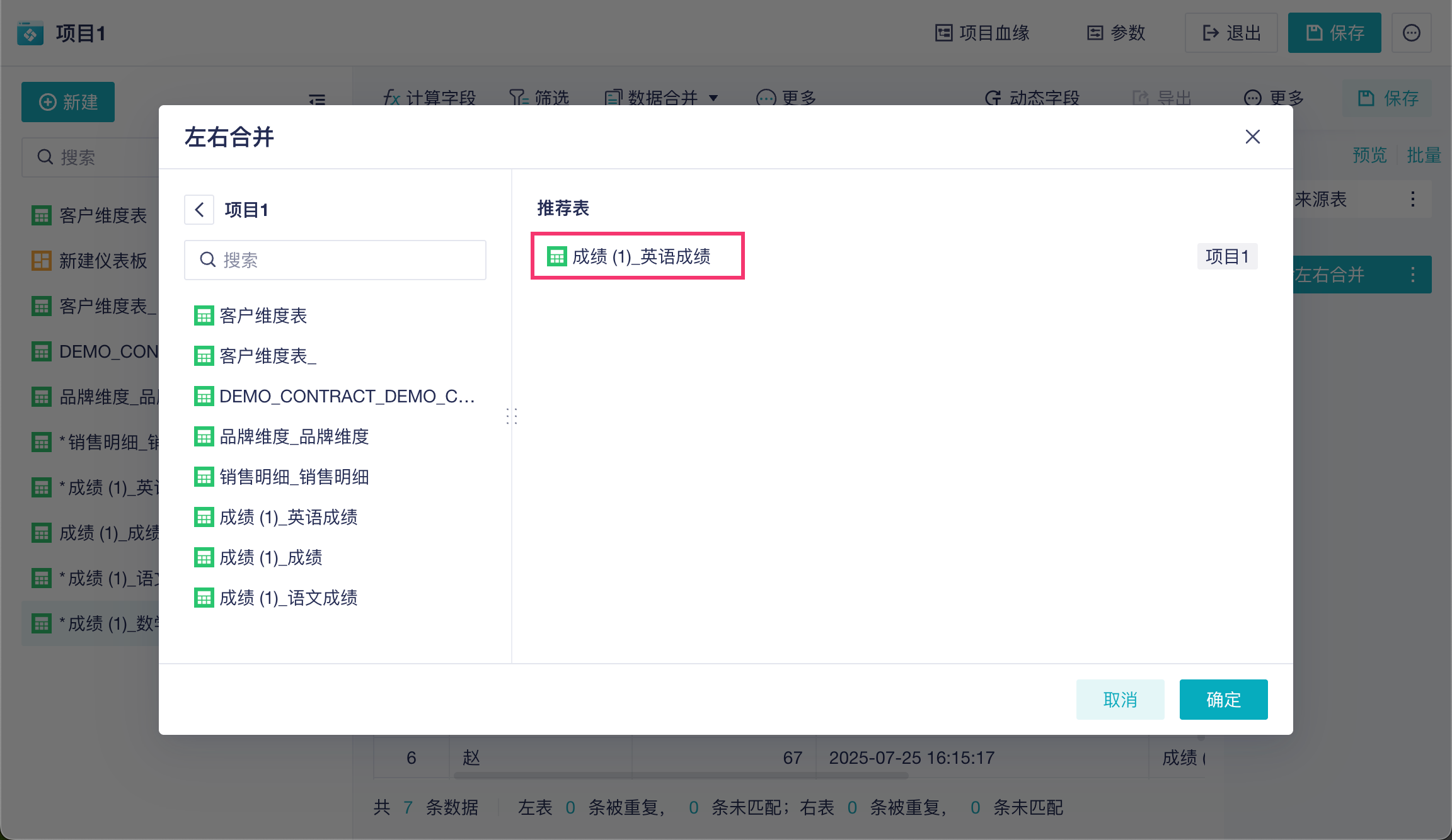 每个左右合并步骤保存之后,里面的配置会记录下来,后续每次左右合并选表的时候,会从记录里找到匹配度较高的左右合并步骤并进行推荐。
