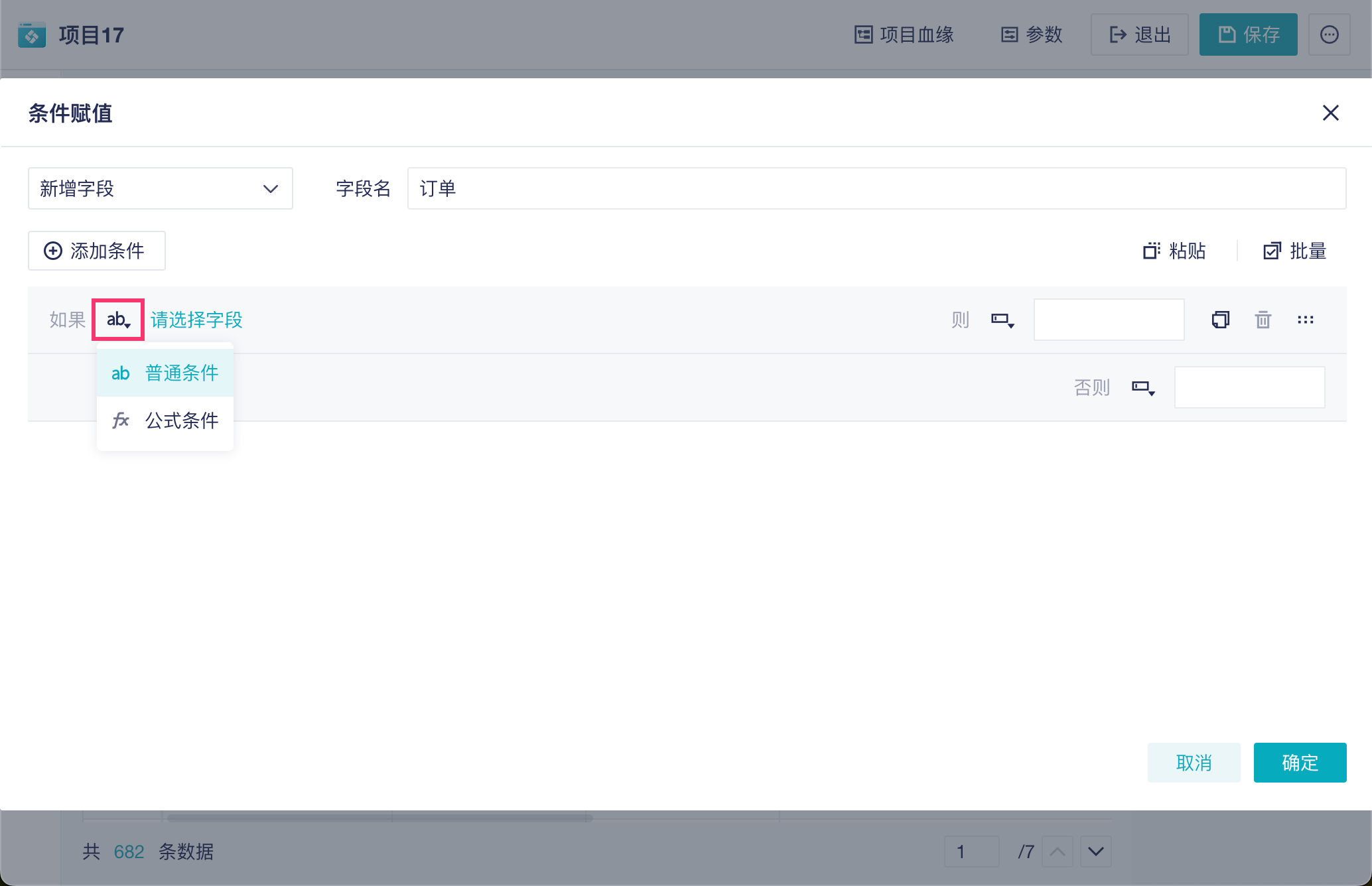 支持普通条件、公式条件,支持同时添加多个不同类型的条件,灵活进行赋值;