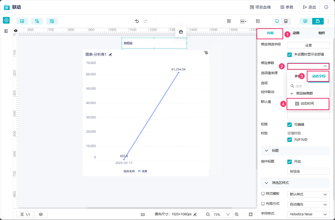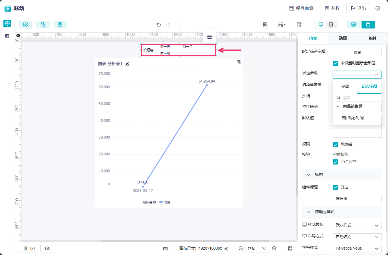 • 在仪表板中添加动态字段筛选器绑定动态字段。