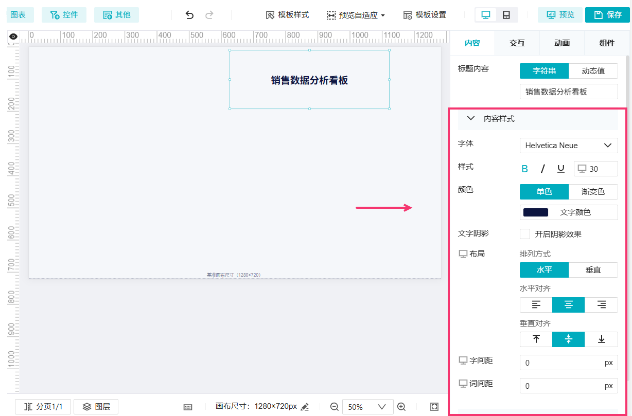 1)排列方式:支持设置标题为水平或者垂直 2)对齐方式:支持设置标题内容显示位置为居左、居中或居右 |