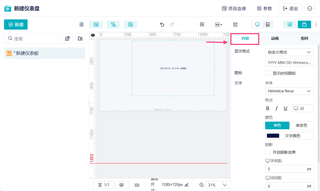 | 日期时间 | 设置是否「显示日期时间」,默认显示 支持下拉选择显示的内容,内容格式也支持下拉选择或手动修改