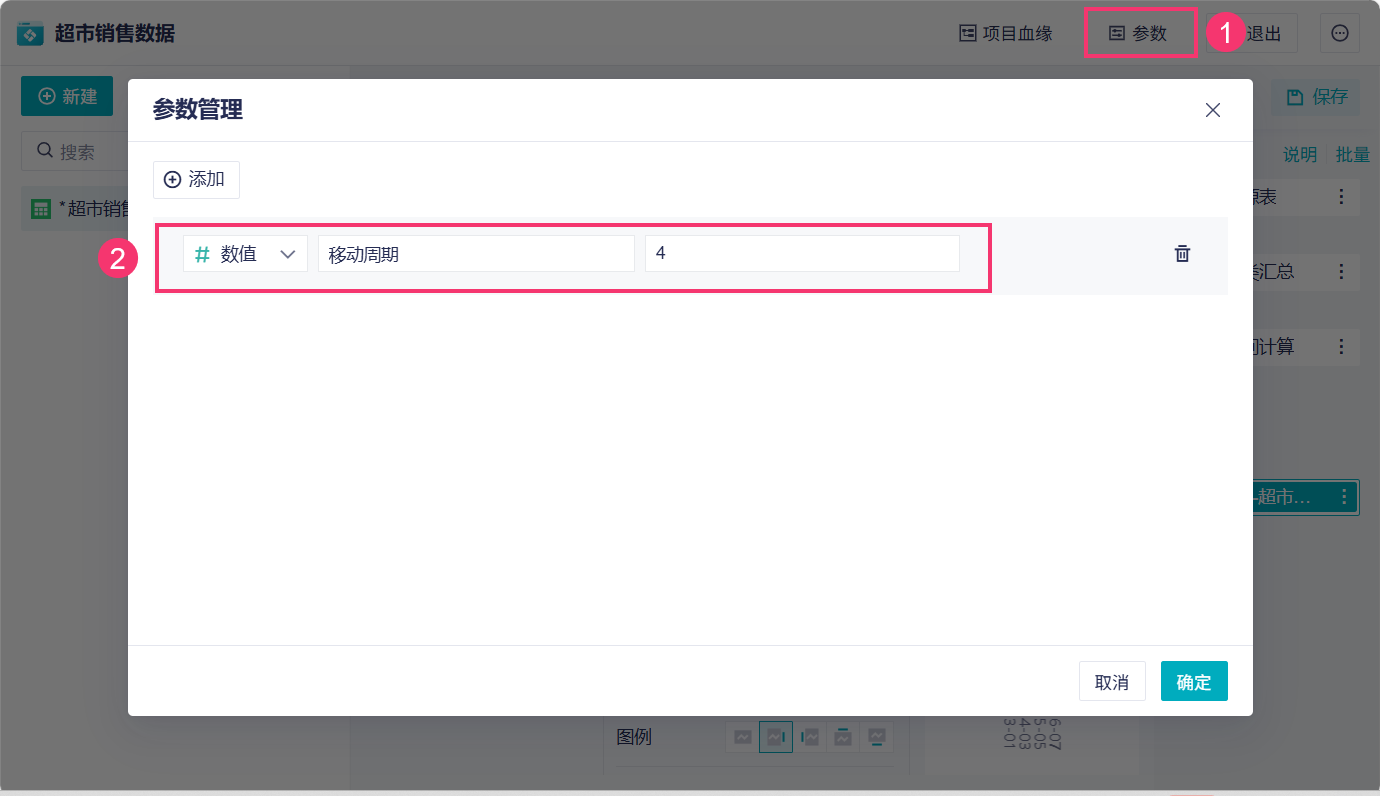 1)进入「参数管理」,新增一个数值参数命名为「移动周期」,可以设置一个默认值。如下图所示: