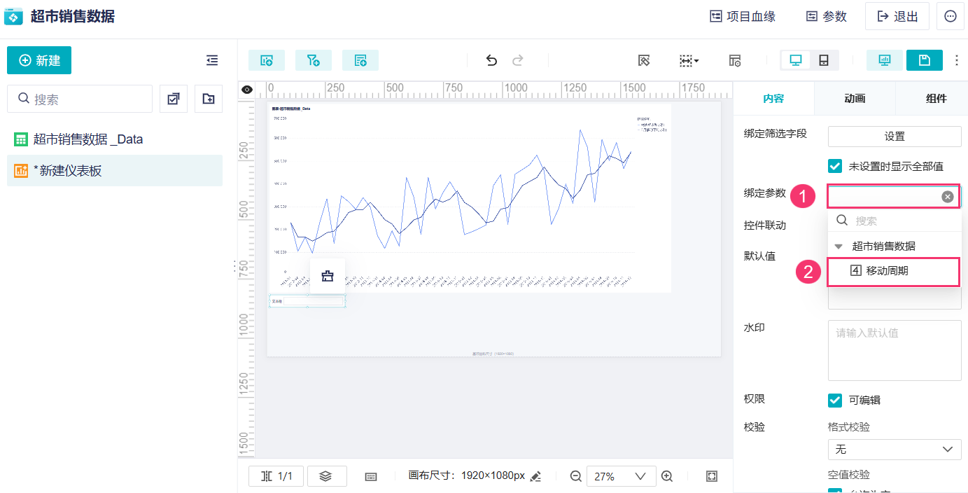 2)控件绑定上面新增的「移动周期」参数。如下图所示: