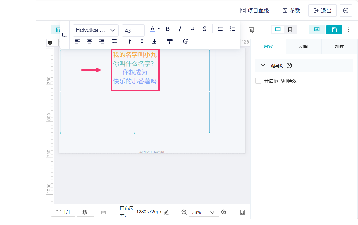 支持「开启跑马灯特效」,实现文字整体滚动的效果。如下图所示: