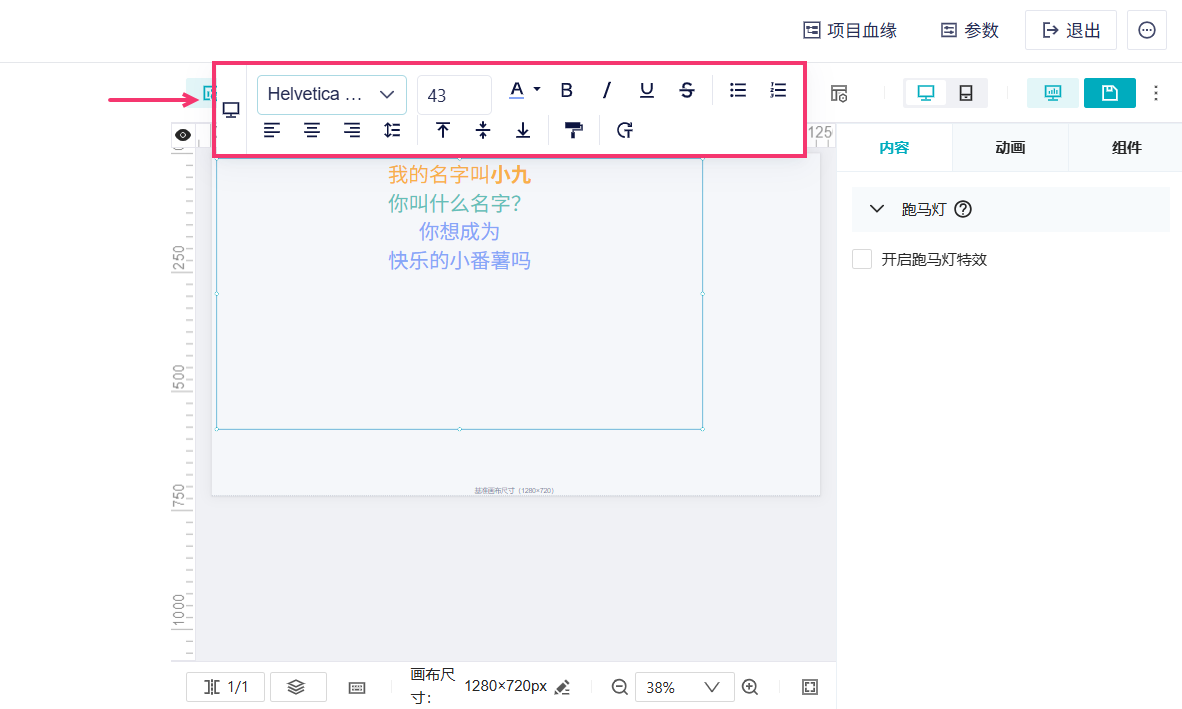 1)在富文本组件内,输入文本内容。