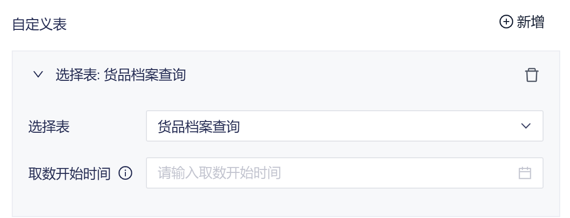 2)对于某些数据源的某些表有着特殊的请求参数,必须用户传入。针对这些表,可以通过新增自定义表实现配置。