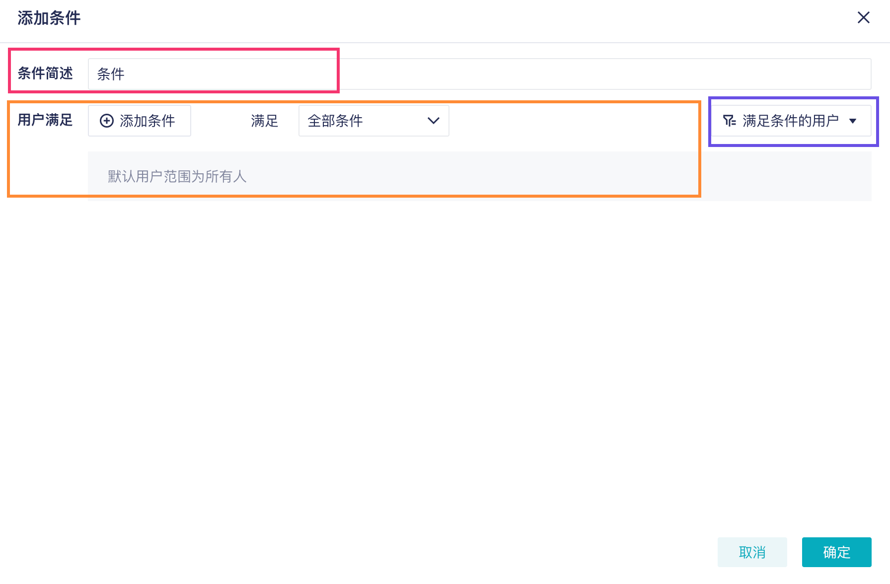 | 条件设置区域 | 可以根据当前企业的用户属性,设置多个条件 |