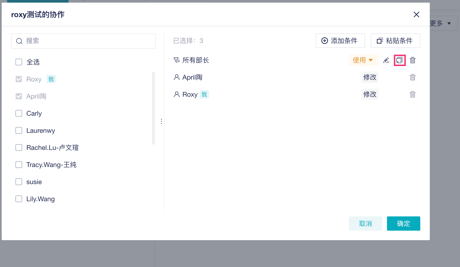 支持复制已有的条件设置,并在其他协作弹窗中粘贴,实现快速复用。