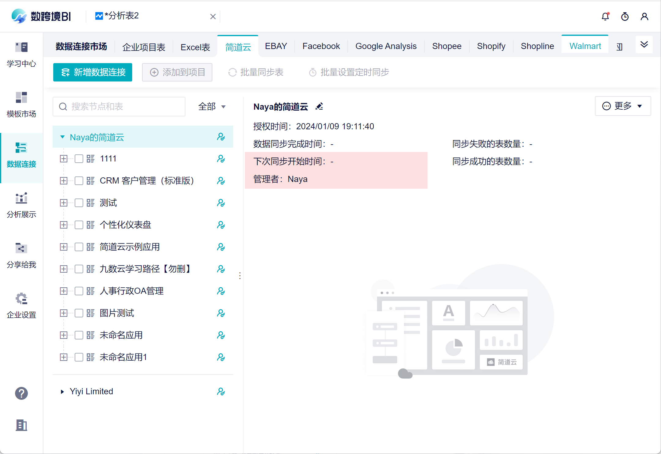 除 Excel 数据源仅展示管理者信息外,其他数据源均展示一样的数据源信息,例如管理员、数据同步完成时间等等。