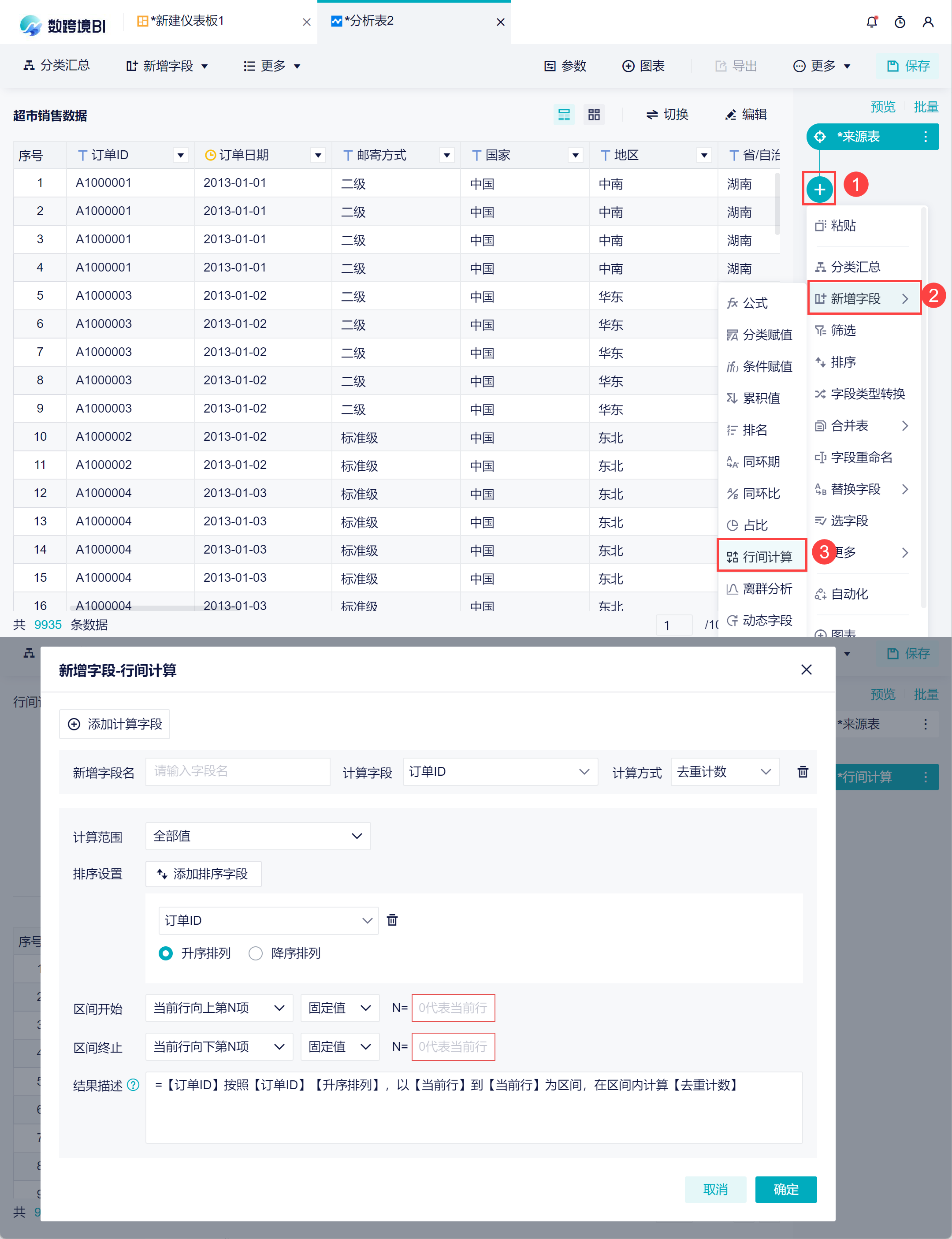 新增「行间计算」功能,通过可视化的配置界面,可以轻松解决移动平均、移动求和、错行取数等场景。简化复杂数据处理,提高分析效率。