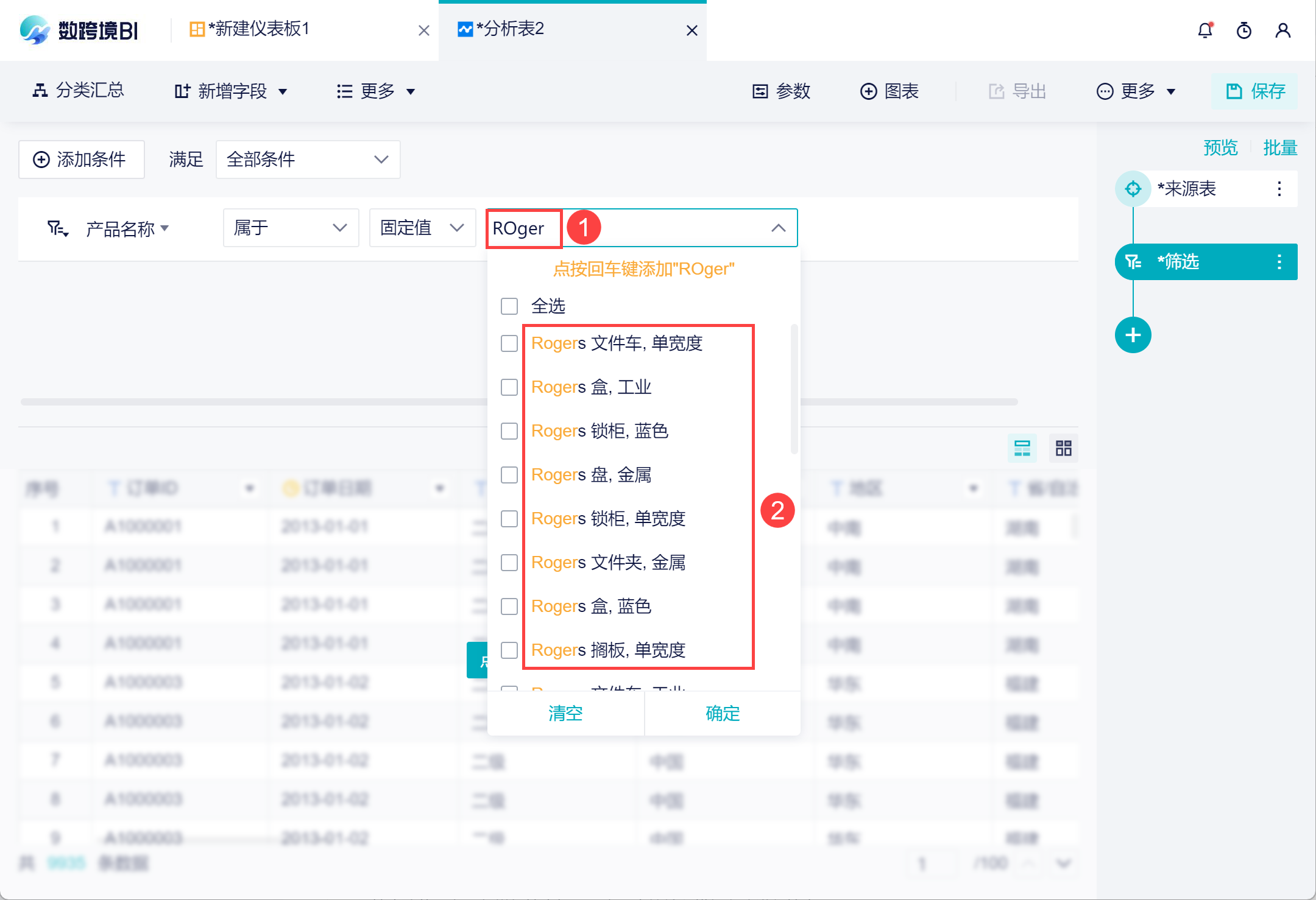 1)例如,在仪表板的文本筛选器中输入「ROGER」,列表中会展示「Rogers」的相关信息。如下图所示: