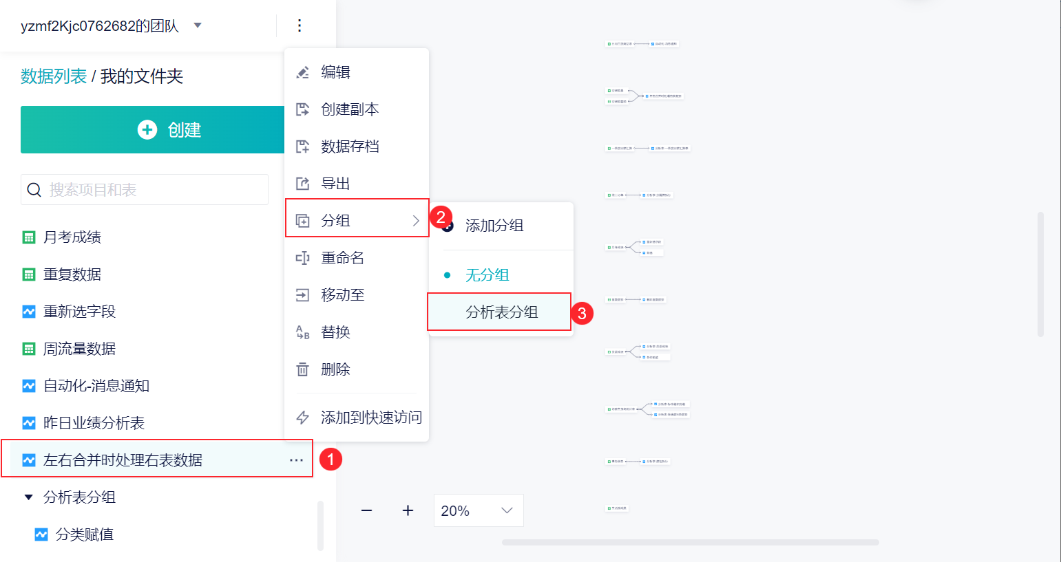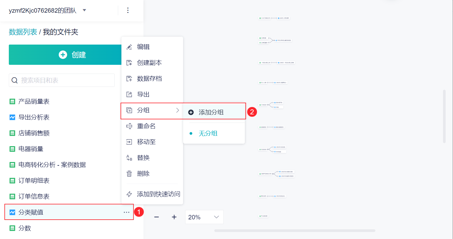 数据表分类下的「数据源表」和「分析表」较多的时候,希望能够对不同的数据表根据表性质和内容进行分组整理,便于快速查找和使用。