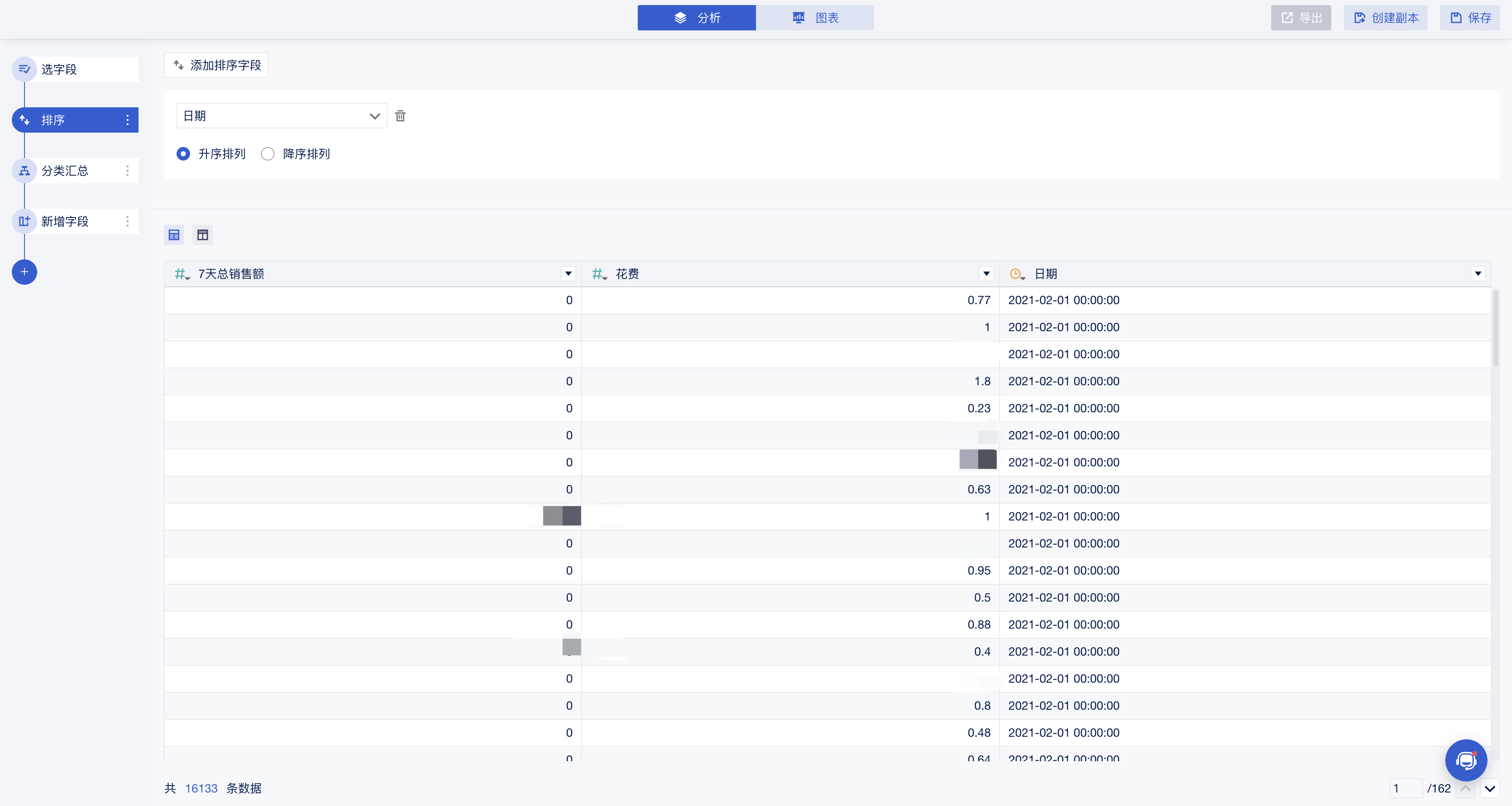 按照日期从早到晚排序,可以更直观展现数据变化趋势