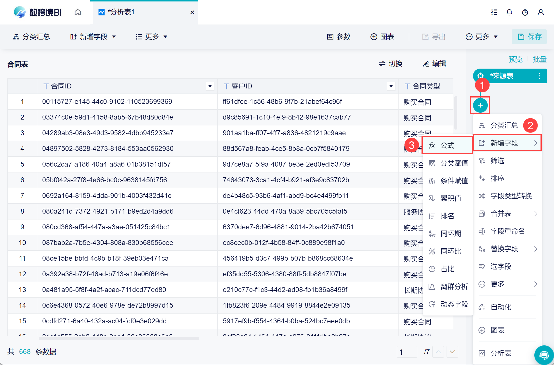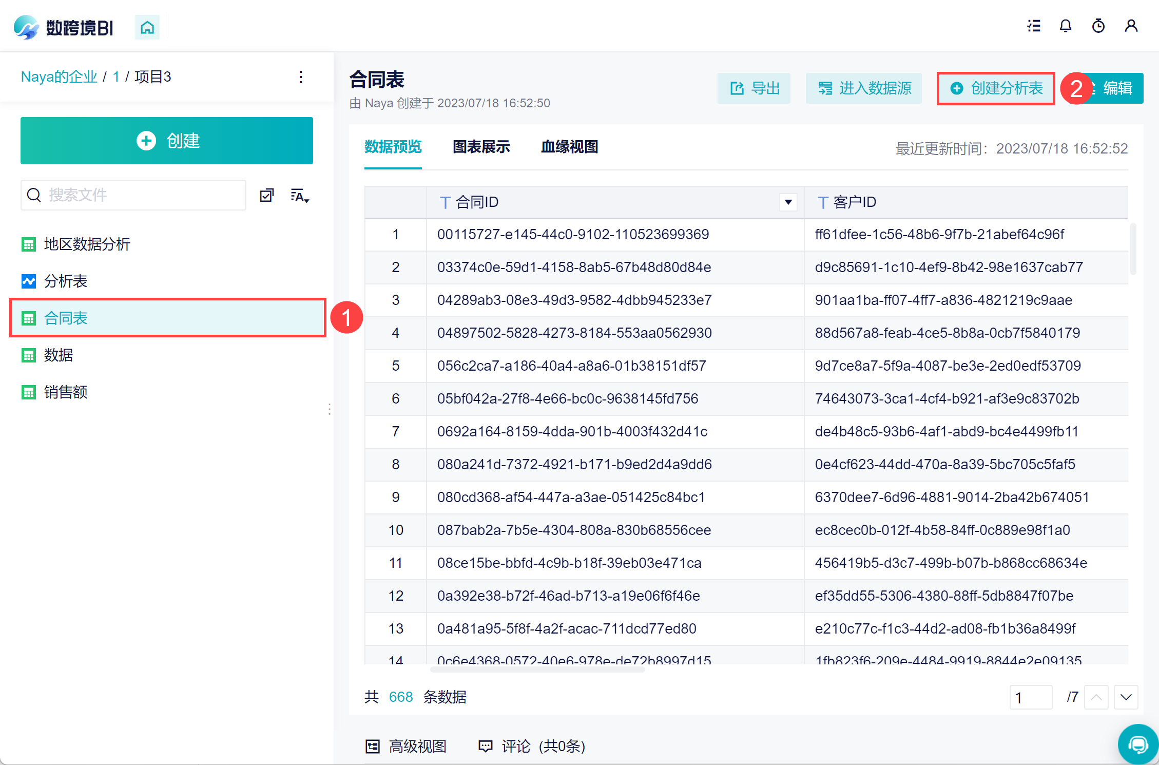 下载示例数据并上传至数跨境,将数据保存在项目中,点击「创建分析表」,如下图所示: