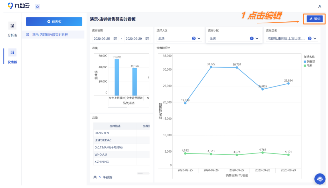 点击右上角编辑按钮,进入仪表板的编辑页面: