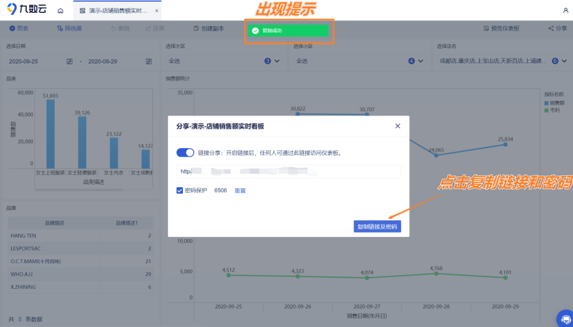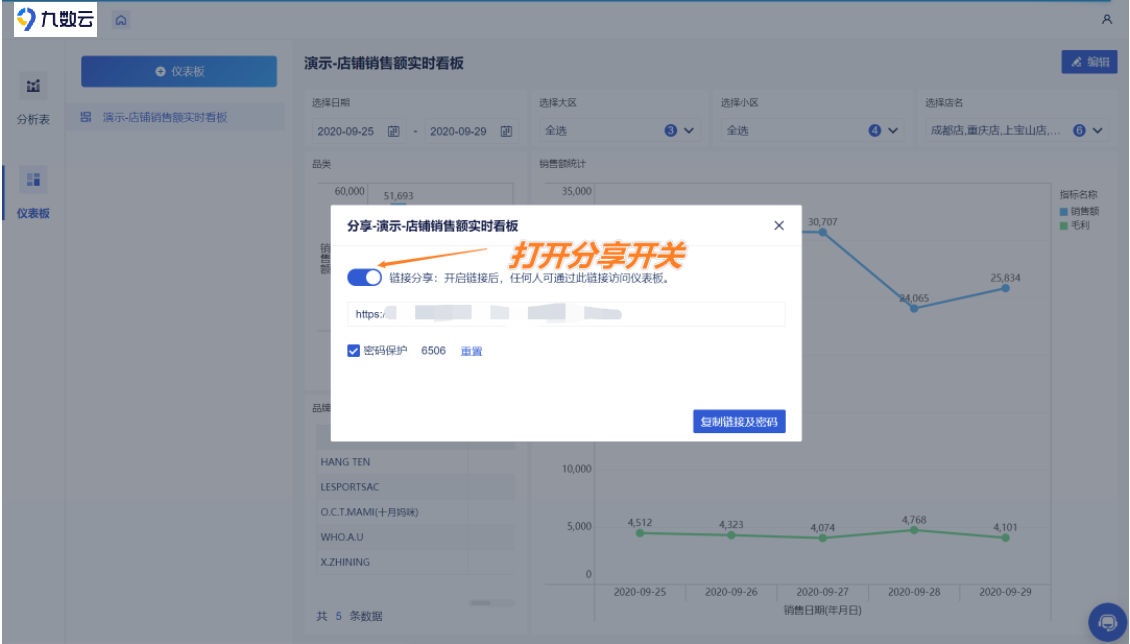 打开分享开关,点击右下角的复制链接及密码可以快速复制链接。
