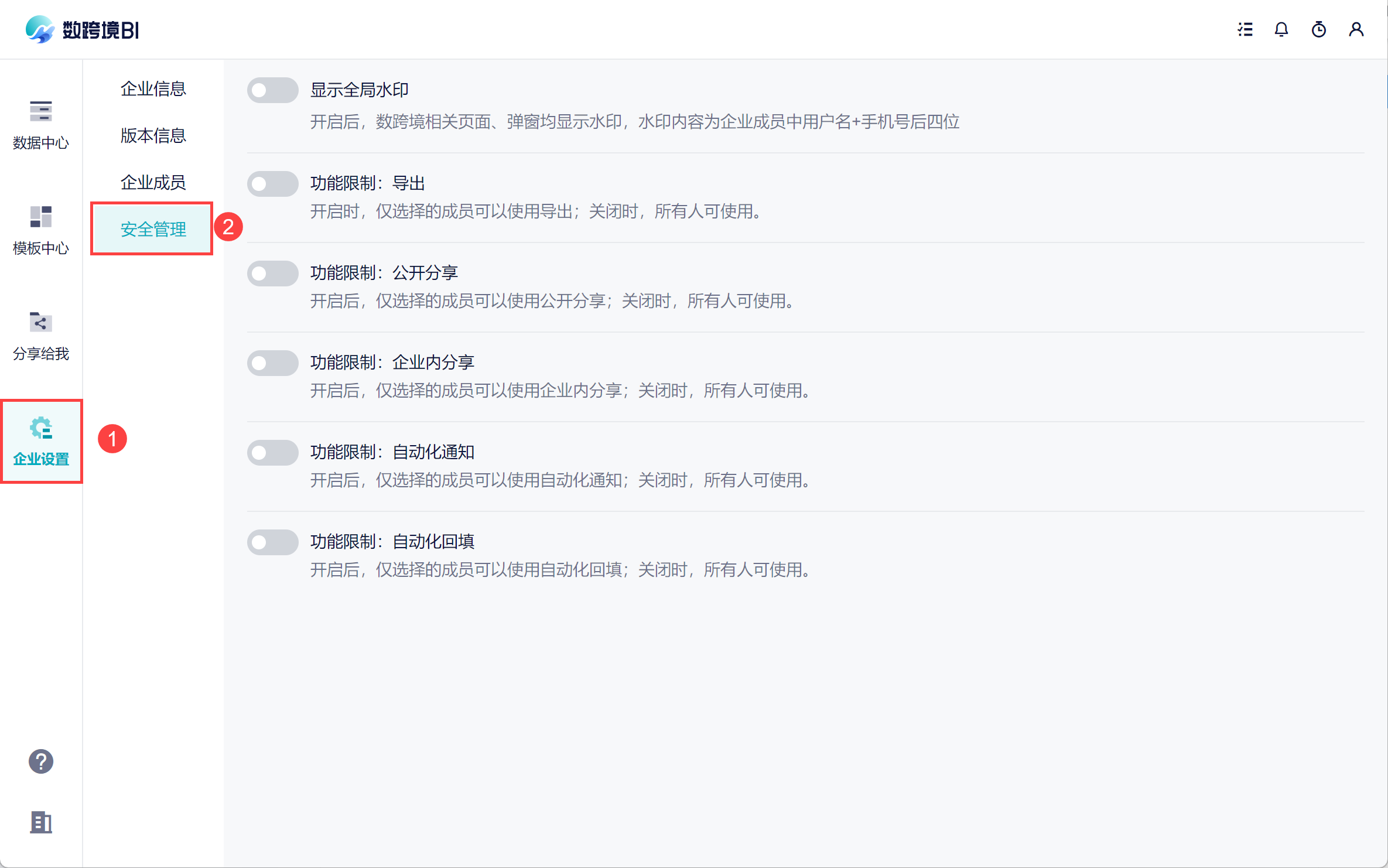 为了增加数据的安全性,一种有效的方式是给数据增加水印。此外,还可以限制用户导出数据或分享看板等行为,避免数据泄露的风险。